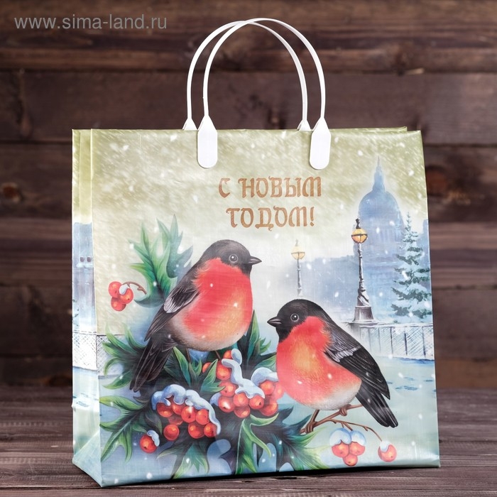 Новый год. Пакет "Пернатые друзья", мягкий пластик, 30х30 см.