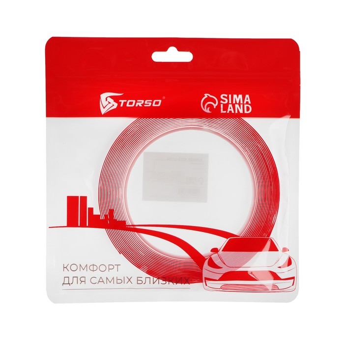 Прозрачная двусторонняя акриловая клейкая лента TORSO предназначена для крепления декоративных элементов к кузову автомобиля. Может использоваться для крепления молдингов, спойлеров, накладок на дверь, обвесов, дефлекторов, эмблем, букв и т.п. Монтажная клейкая лента обладает мягкой акриловой основой и акриловым клеевым слоем, который обеспечивает высокую начальную адгезию. Лента имеет защитный слой из силиконового полиэтилена.