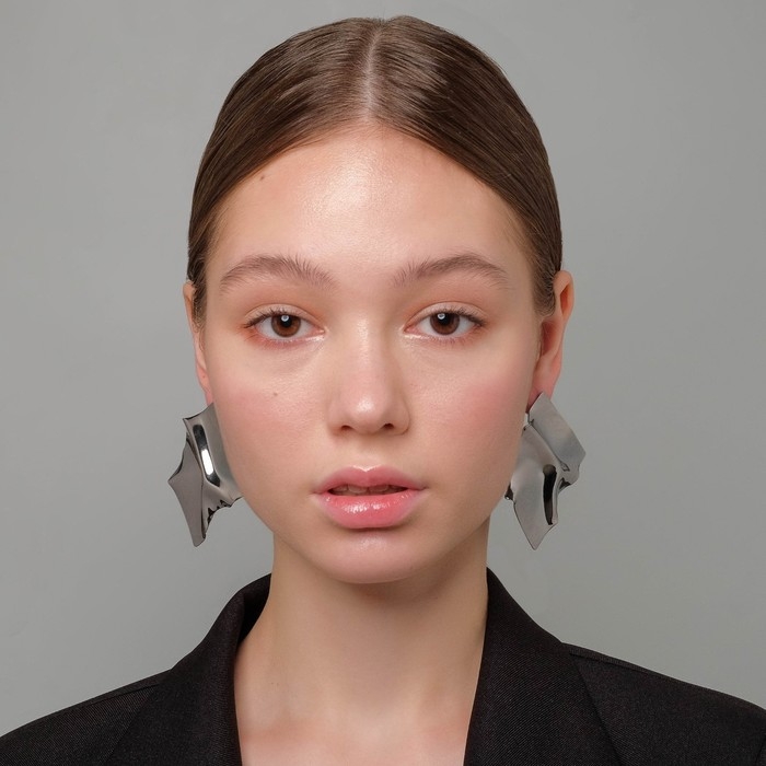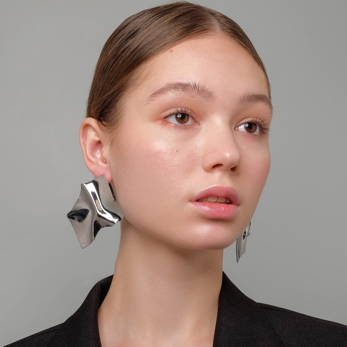 Серьги металл «Атмосфера» ромб мятый, цвет серый