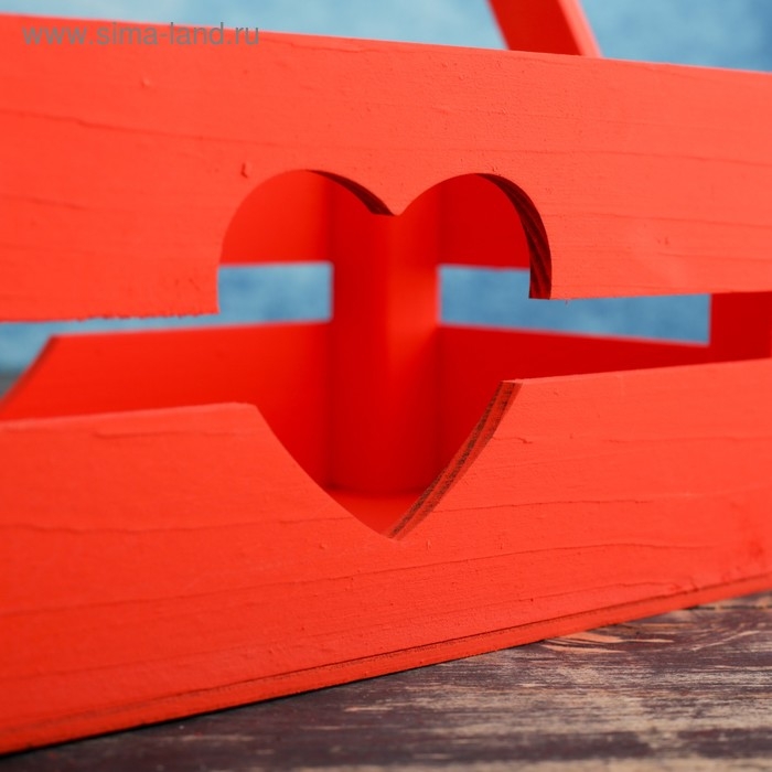 Кашпо деревянное 24.5×13.5×9 см "Двушка Лайт" реечное, сердце, красный Дарим Красиво