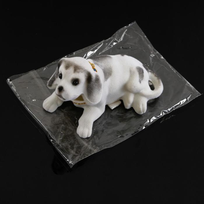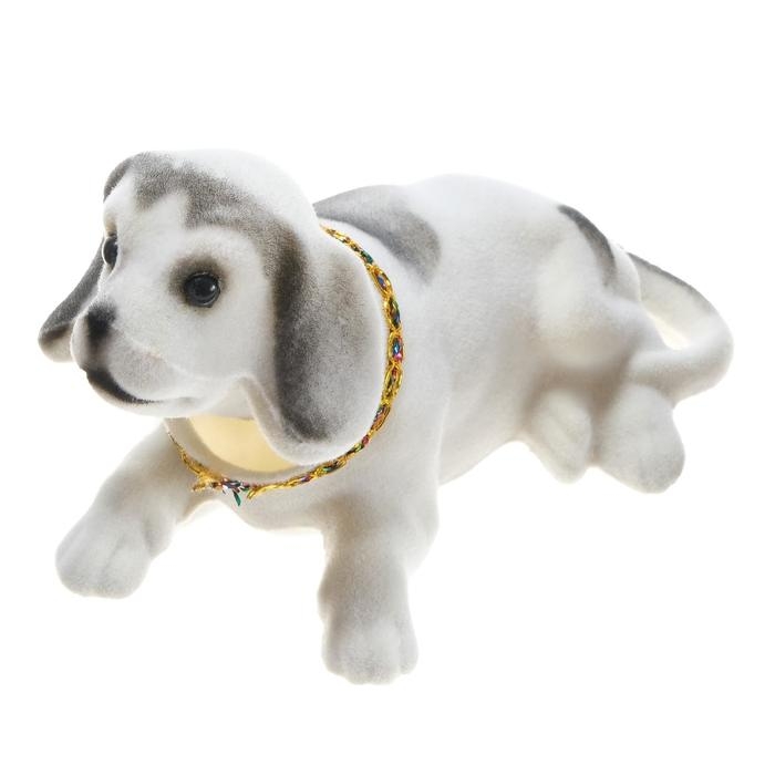 Собака на панель авто, качающая головой, большая, белый окрас