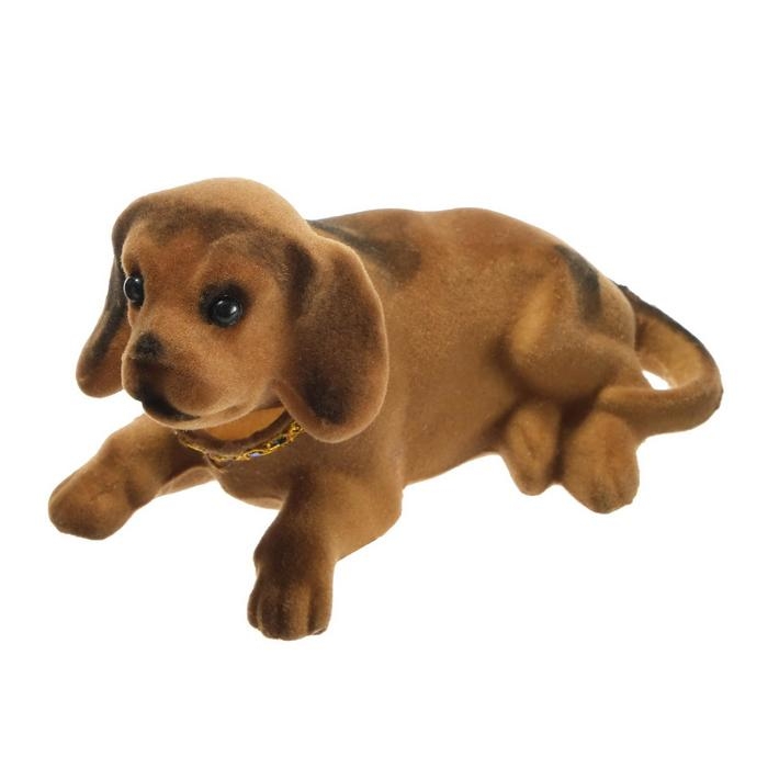 Собака на панель авто, качающая головой, большая, коричневый окрас