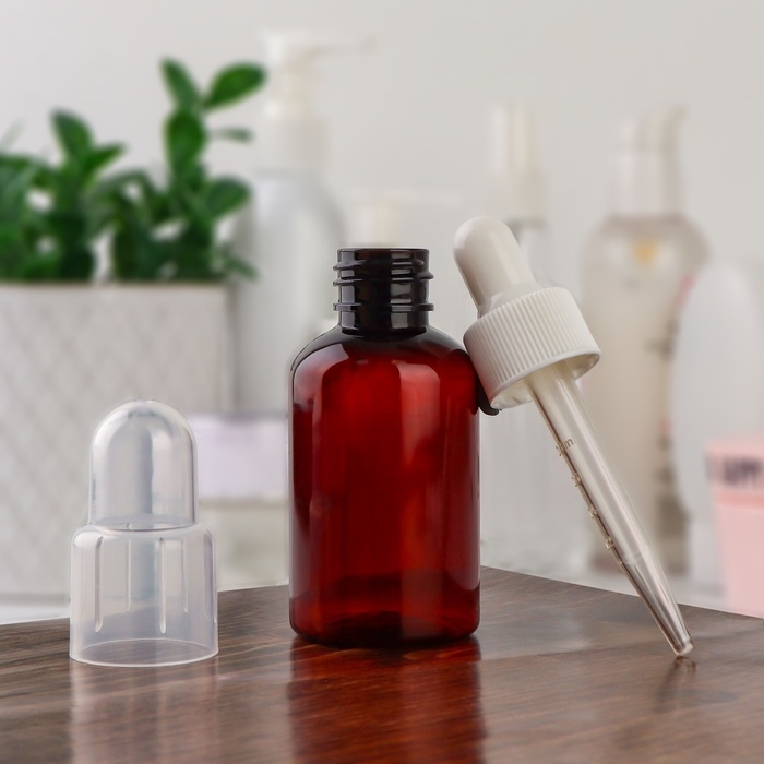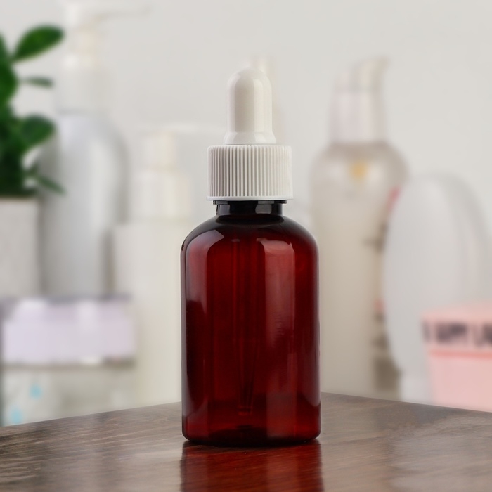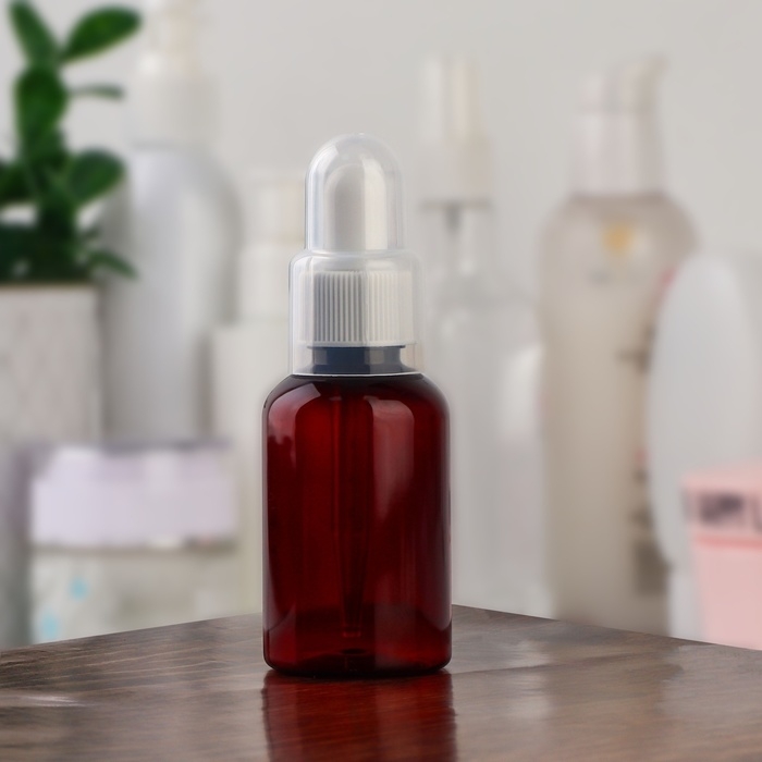 Бутылочка для хранения, с пипеткой, 50 мл, цвет коричневый/белый