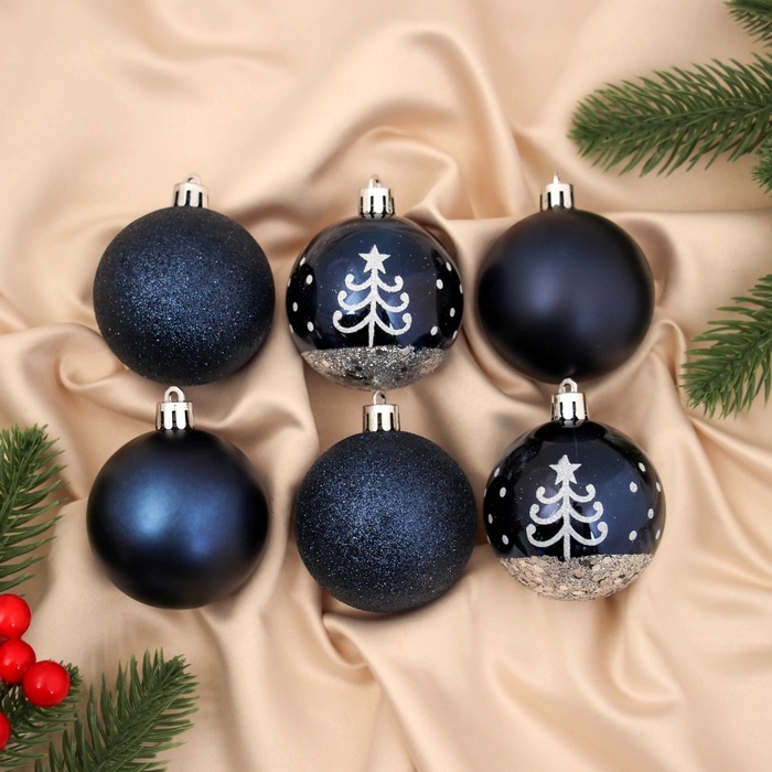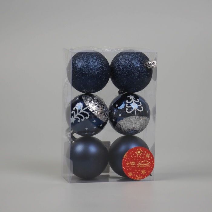 Набор шаров пластик d-6 см, 6 шт "Перелив ёлочка" синий