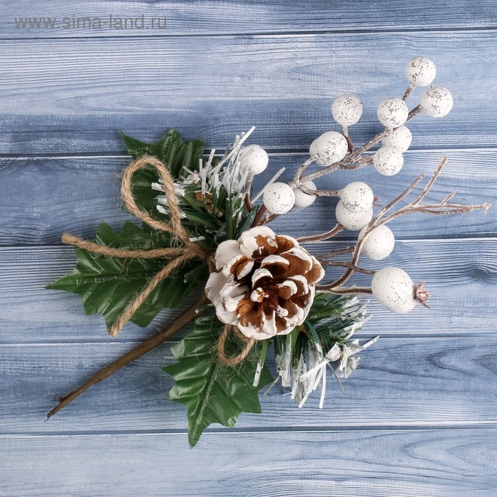 Декор "Зимнее чудо" шишка белые ягоды, 24 см