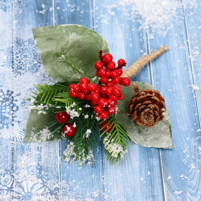 Декор "Зимнее чудо" ягоды шишка хвоя в снегу, 20 см