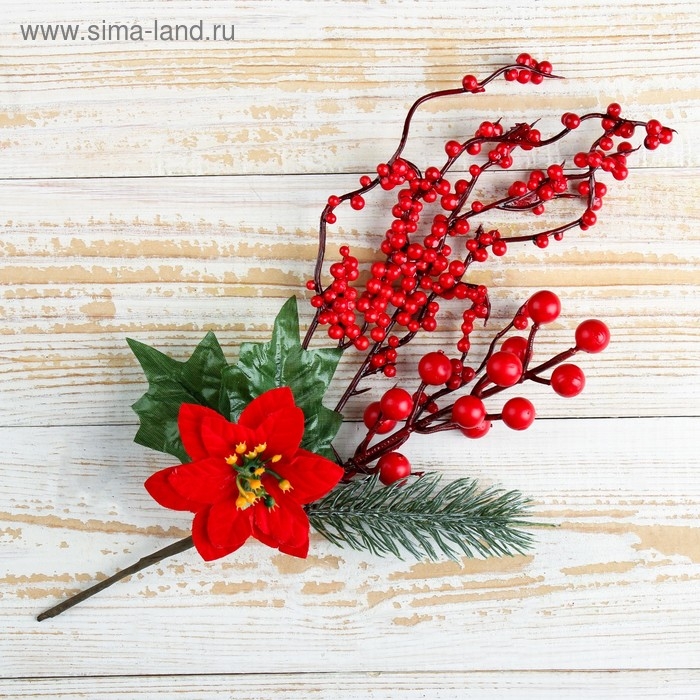 Декор "Зимняя магия" цветок хвоя ягоды, 26 см