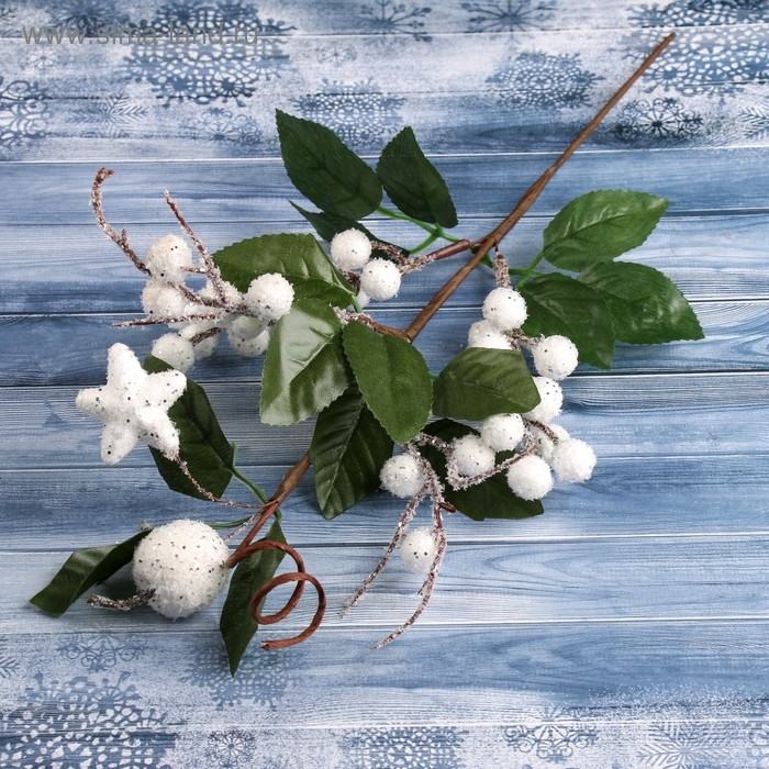 Декор "Зимняя магия" белые ягоды листья, 35 см