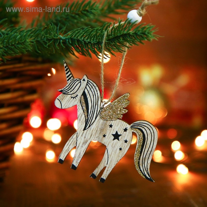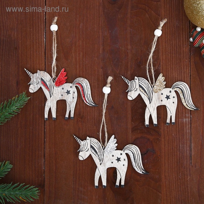 Новогодняя подвеска «Единороги» 0,5 × 9 × 7,5 см, односторонняя, МИКС