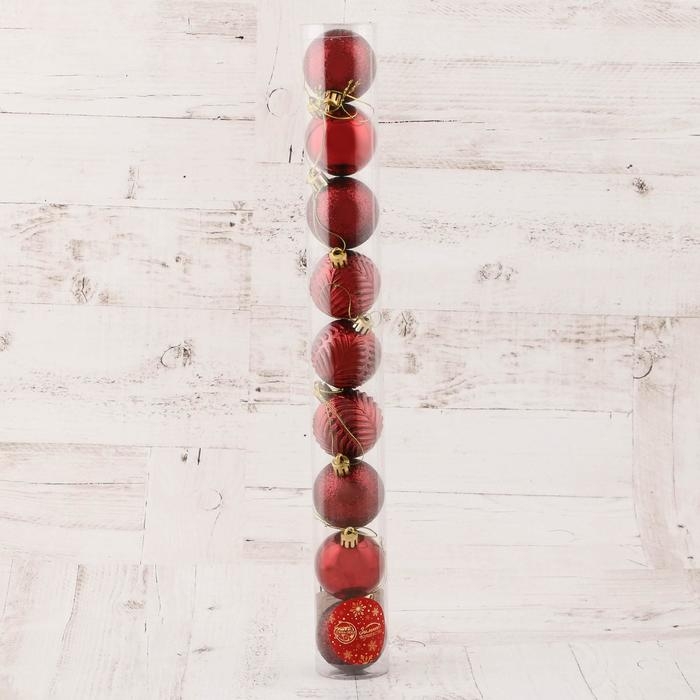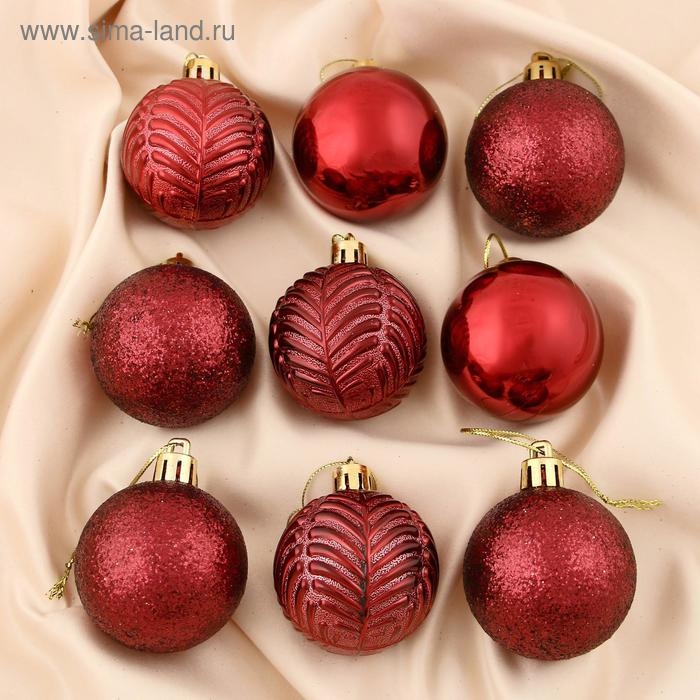Набор шаров пластик d-5 см, 9 шт "Новогодние ветви" бордовый