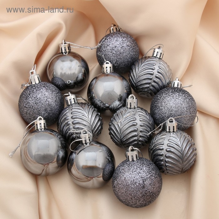 Набор шаров пластик d-5 см, 12 шт "Новогодние ветви" серый