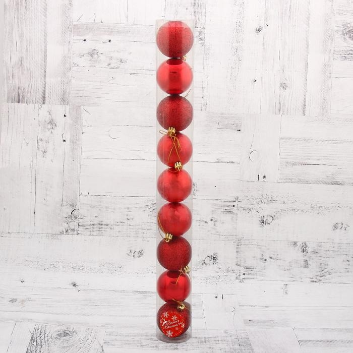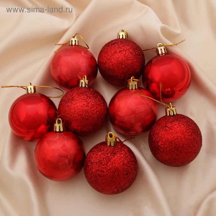 Набор шаров пластик d-6 см, 9 шт "Камилла" красный