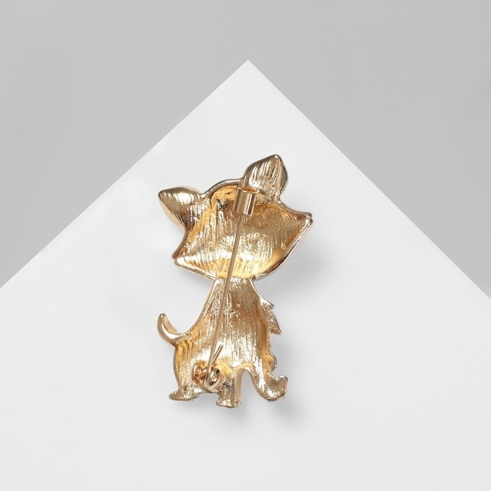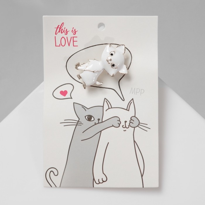 Брошь «Котенок» взъерошенный, цвет белый в золоте