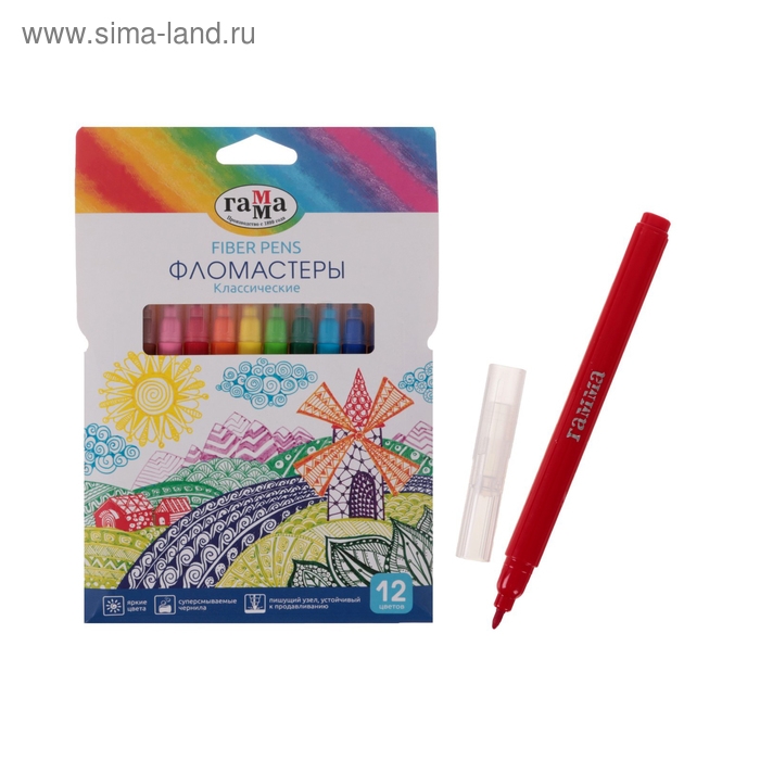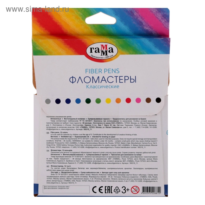 Фломастеры 12 цветов Гамма "Классические", смываемые, картонная упаковка, европодвес 180319_11