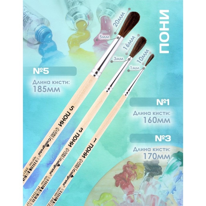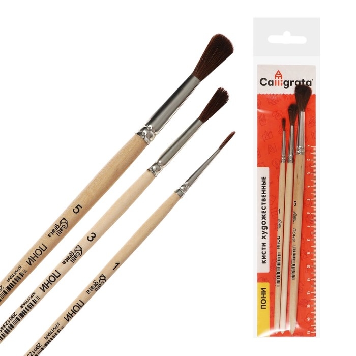 Набор кистей Пони 3 штуки, Calligrata №1 (круглые №: 1, 3, 5), деревянная ручка