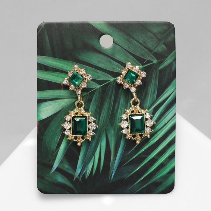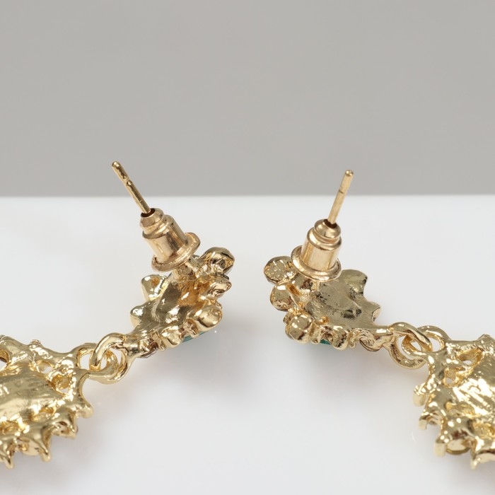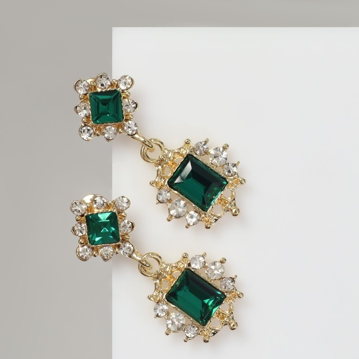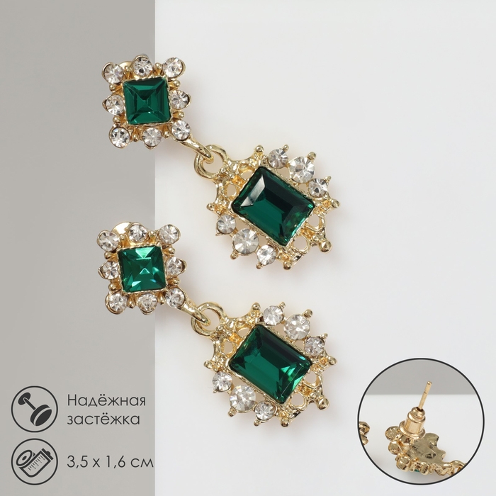 Серьги со стразами «Ажур» дуэт, цвет изумрудный в золоте