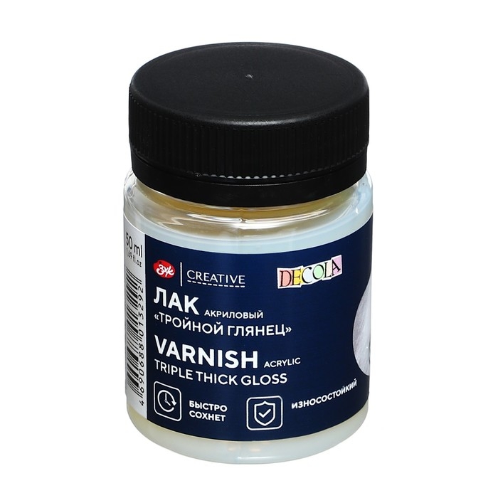 Лак акриловый глянцевый, на водной основе 50 мл, ЗХК Decola "Тройной глянец" 5828961