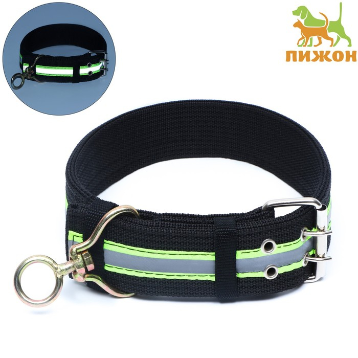 Ошейник четырехслойный светоотражающий с вертлюгом, 71 х 5 см, ОШ 55-65 см, чёрный