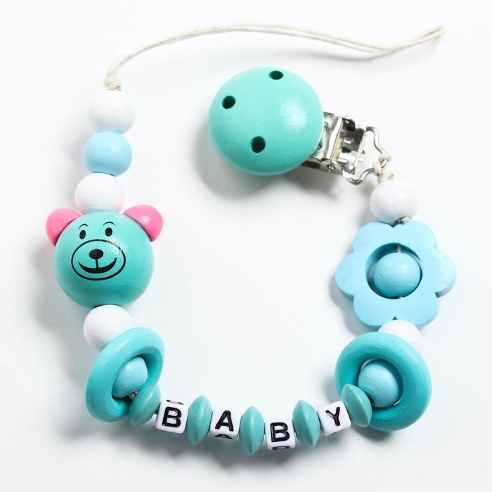 Держатель для соски - пустышки «Мишка», деревянный, цвет бирюзовый