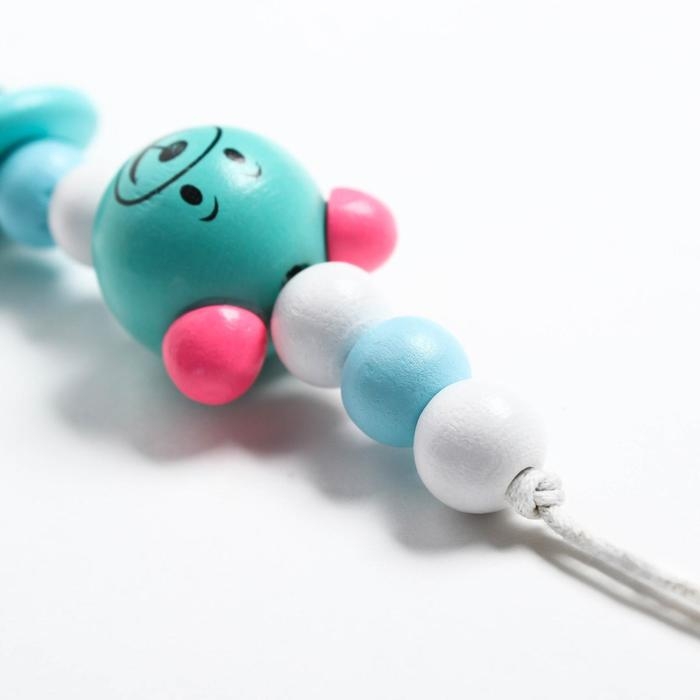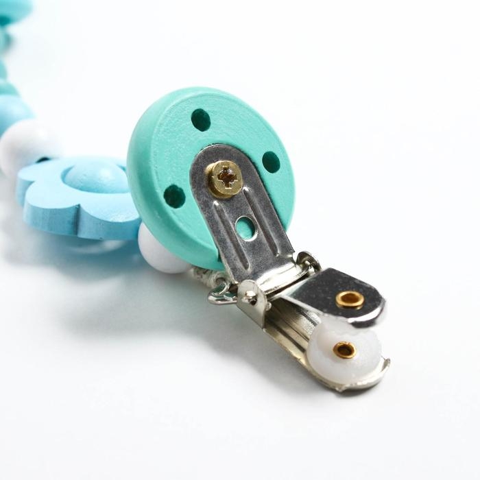 Изделие фиксируется на одежде ребёнка. На конце цепочки есть карабин, который зацепляется за кольцо пустышки. Надёжное крепление убережёт вещь от падения на пол, если малютка случайно выронит её изо рта.