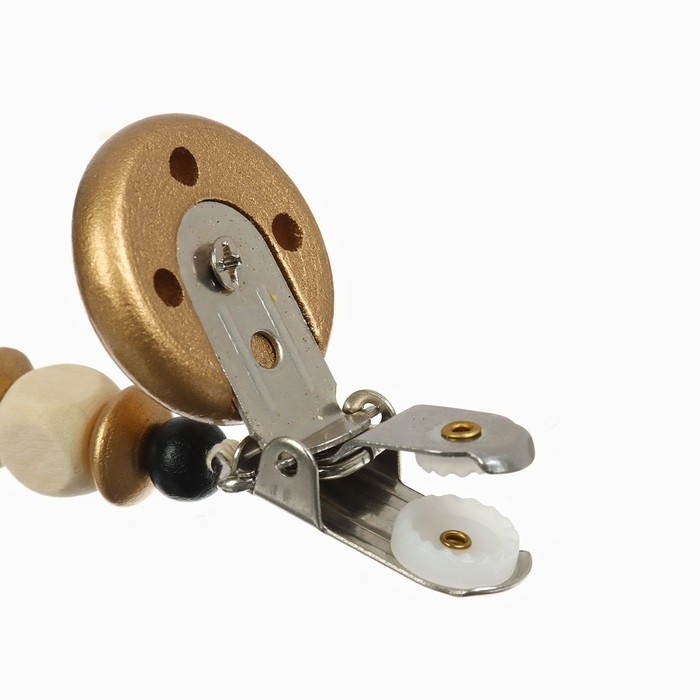 Изделие фиксируется на одежде ребёнка. На конце цепочки есть карабин, который зацепляется за кольцо пустышки. Надёжное крепление убережёт вещь от падения на пол, если малютка случайно выронит её изо рта.
