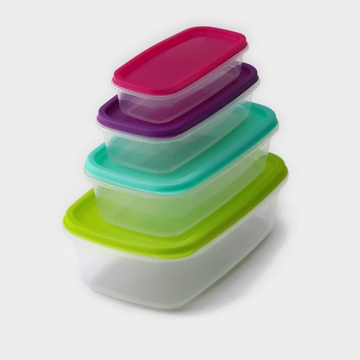 Набор контейнеров для хранения Доляна «Радуга», 4 шт: 19×12, 16×9, 14×7, 12,5×5,5 см, цвет МИКС