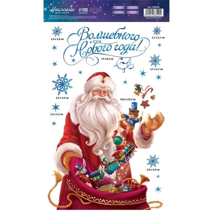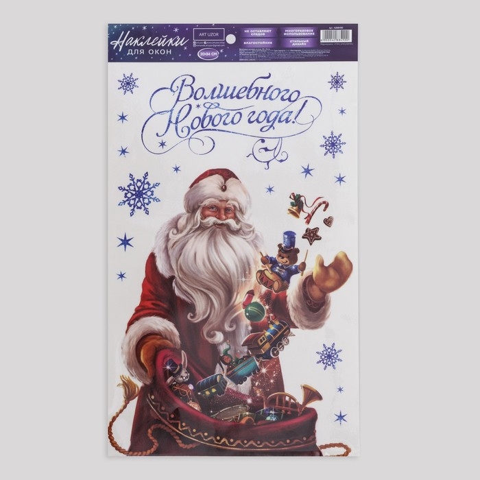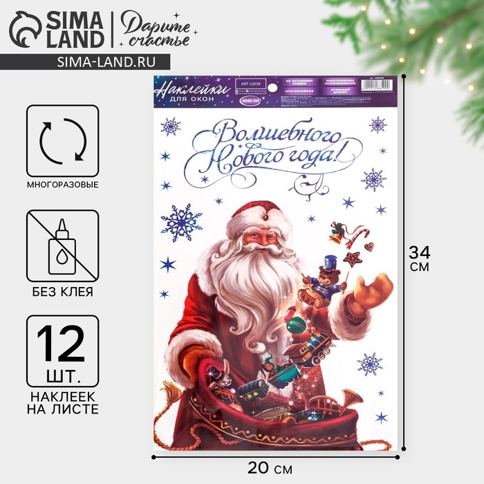 Наклейки новогодние на окна, виниловые «Волшебного Нового года», многоразовые, 20 х 34 см, Новый год