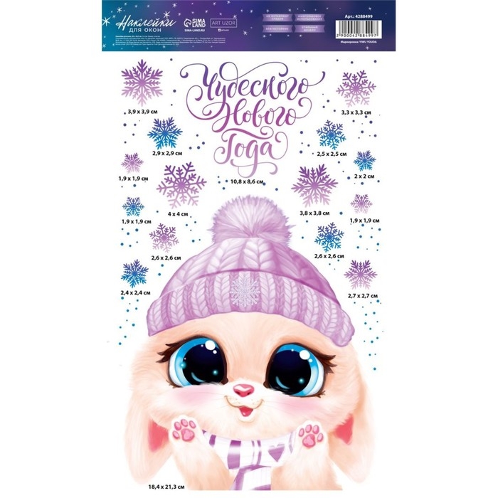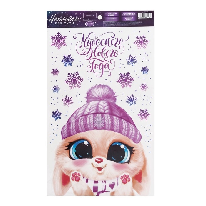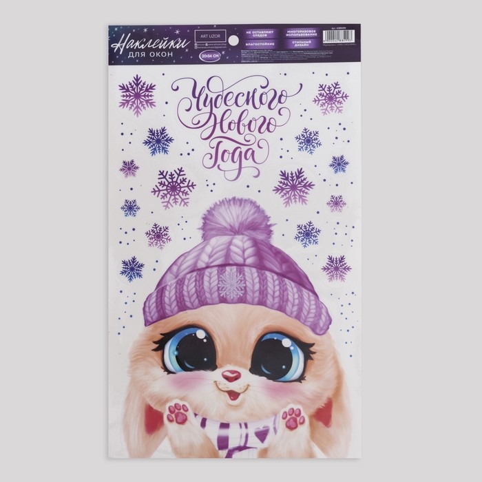 Наклейки новогодние на окна, виниловые «Зайчонок», многоразовые, 20 х 34 см, Новый год