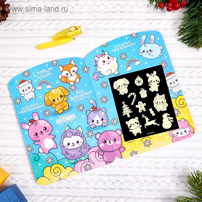 Рисование светом. Набор для рисования в темноте «Милые звери», А5