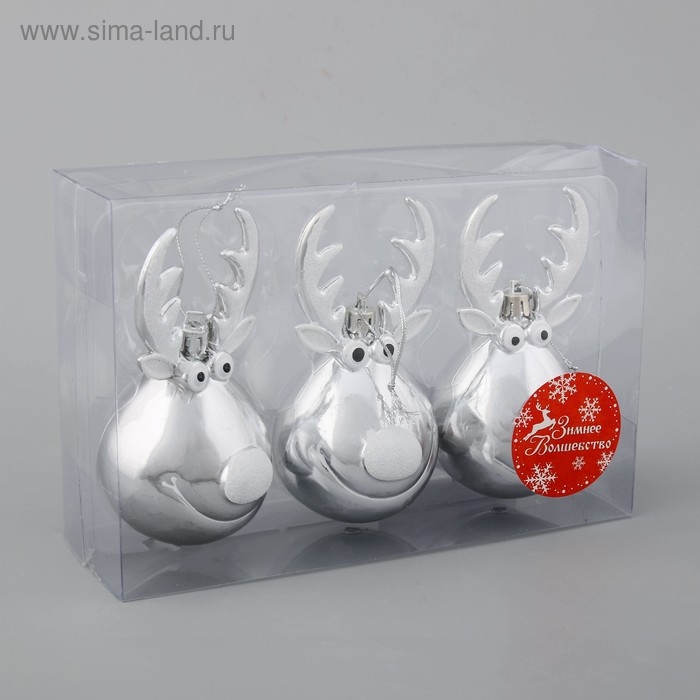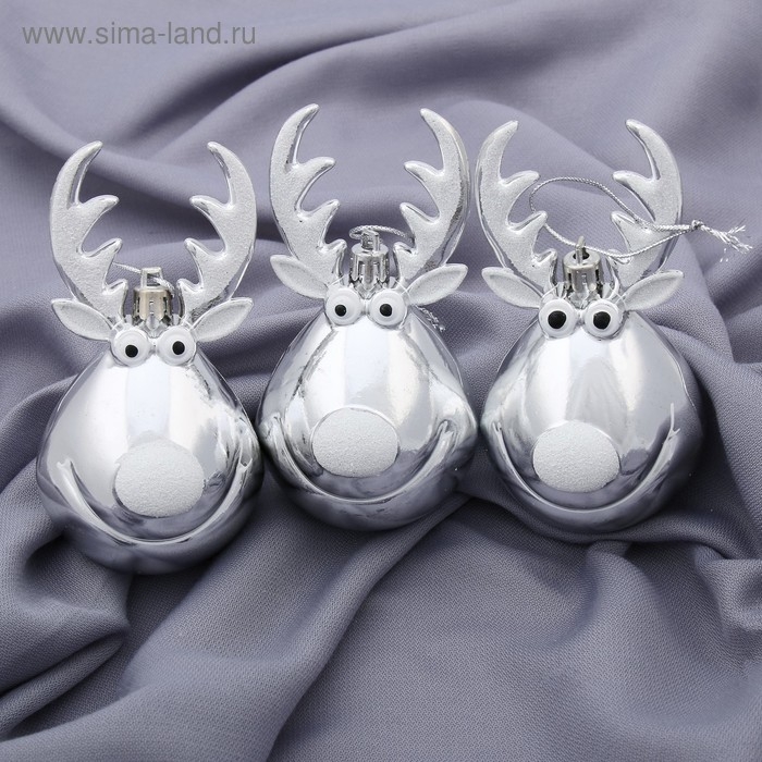 Украшение ёлочное "Весёлый олень" (набор 3 шт) 11х6 см, серебро