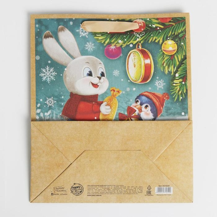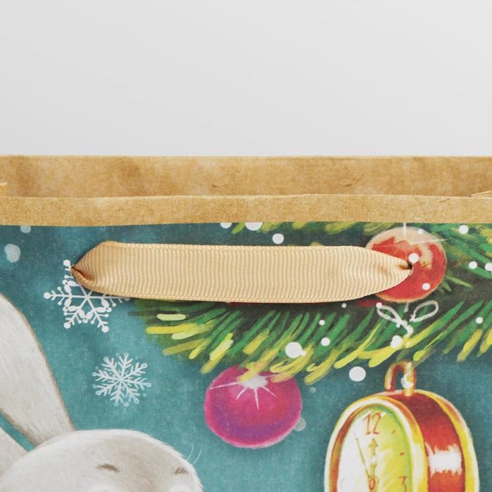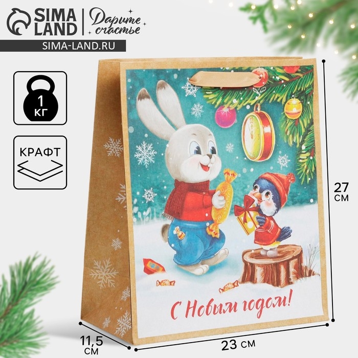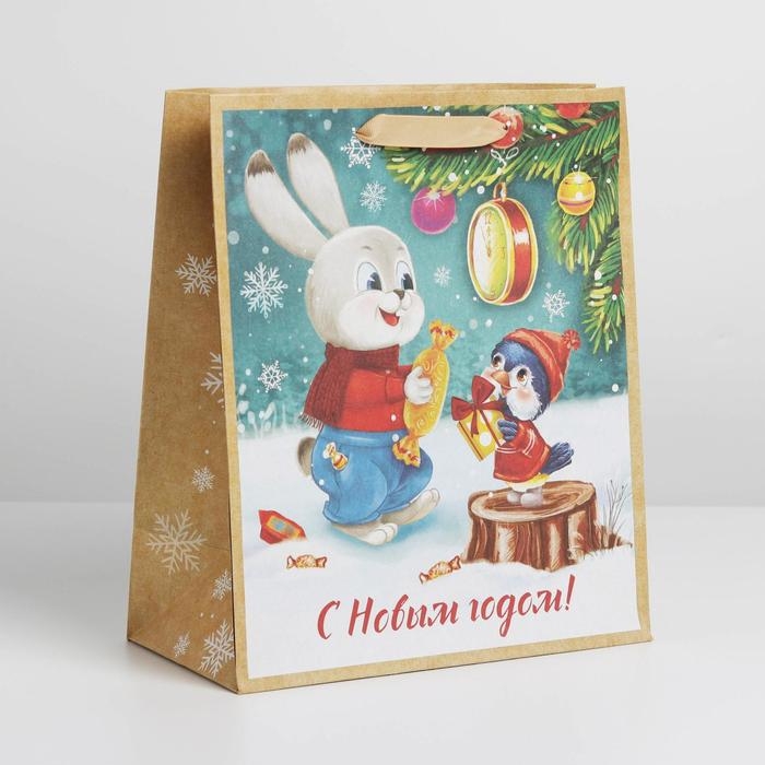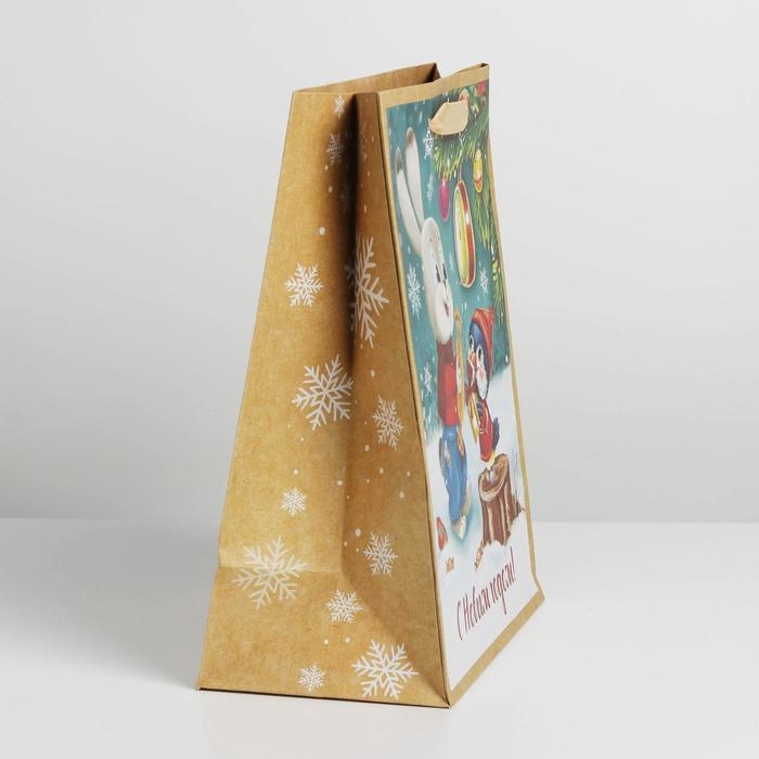 Пакет подарочный новогодний крафтовый вертикальный «С Новым годом!», ML 23 х 27 х 8 см, Новый год