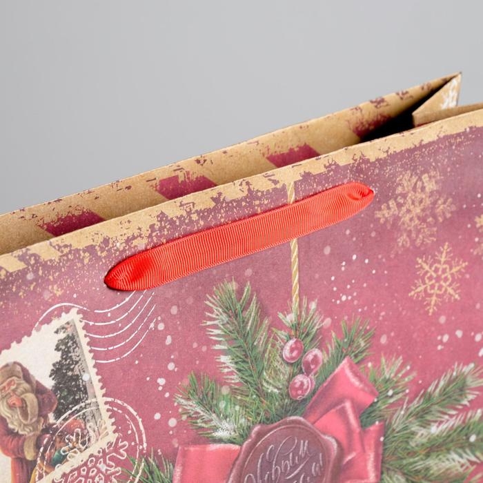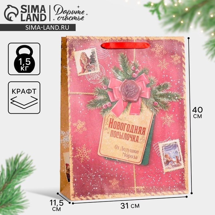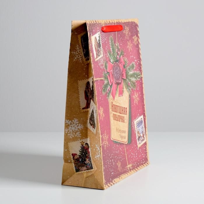Пакет подарочный новогодний крафтовый вертикальный «Новогодняя посылочка от Дедушки Мороза», L 31 х 40 х 9 см, Новый год