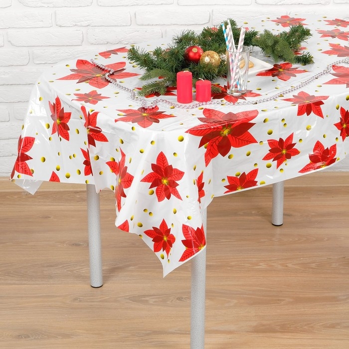 Скатерть из ПВХ удобна в использовании: с неё легко удалять пятна, а после застолья не нужно стирать — достаточно просто протереть. Такое нарядное убранство позволит всем гостям настроиться на позитивную волну!
