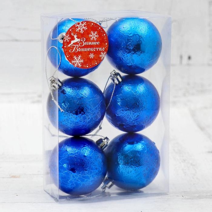 Набор шаров пластик d-6 см, 6 шт "Калисса" синий