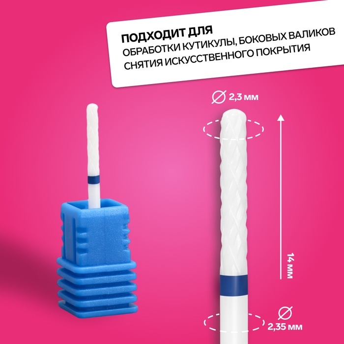 Фреза керамическая для маникюра «Тонкая», средняя нарезка, 2,3 × 14 мм, в пластиковом футляре, цвет белый