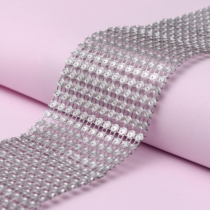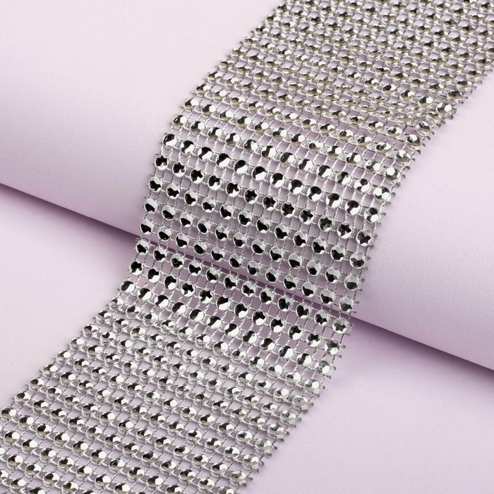 Лента с имитацией страз, 6 см, 9 ± 1 м, цвет серебряный