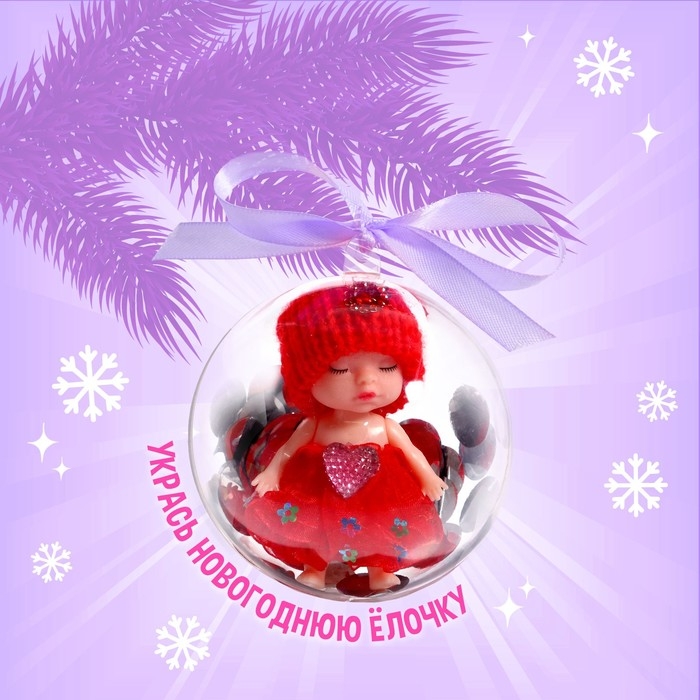 Шар с игрушкой — отличный подарок для девочек к Новому году. Внутри шара вы найдёте красивую куколку. Такой сувенир можно использовать в качестве украшения новогодней ёлки или самостоятельной детской игрушки.