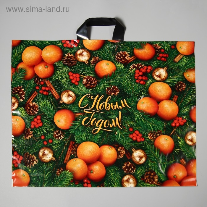 Новый год. Пакет "Оранжевое настроение", полиэтиленовый с петлевой ручкой, 60х50 см.