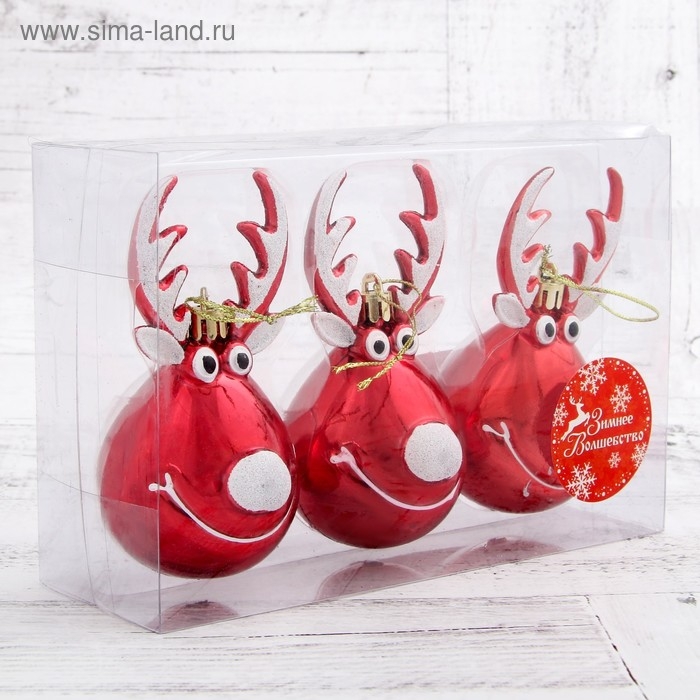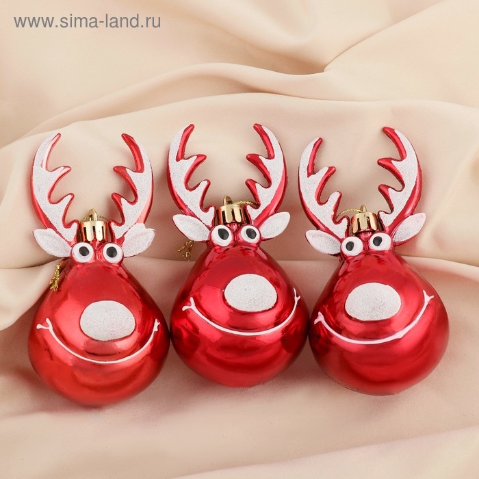 Украшение ёлочное "Весёлый олень" (набор 3 шт) 11х6 см, красный