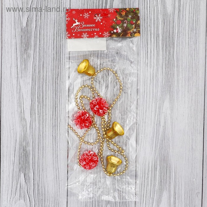Бусы на ёлку 1 м "Шишки и колокольчики" золотисто-красный