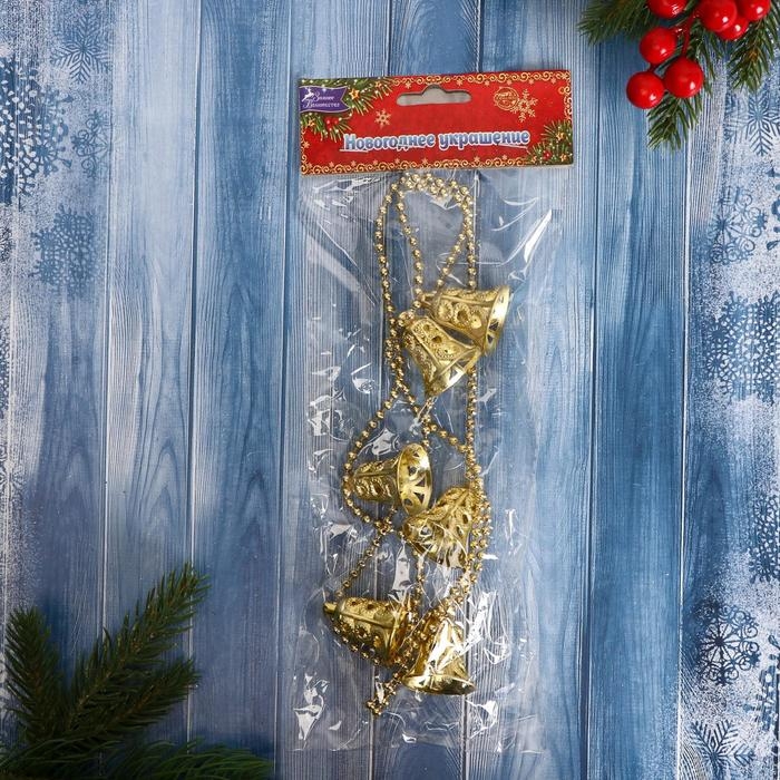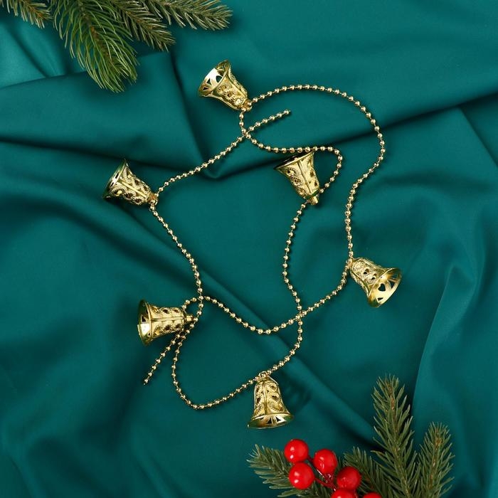 Бусы на ёлку 1 м "Резные колокольчики" золото