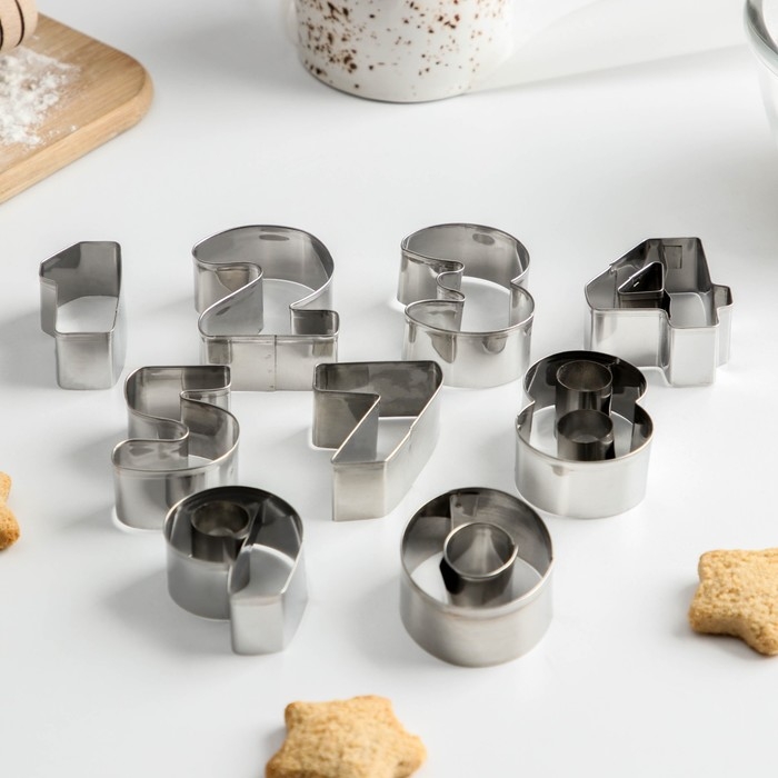 Набор форм для печенья «Цифры», 9 шт, цвет серебристый