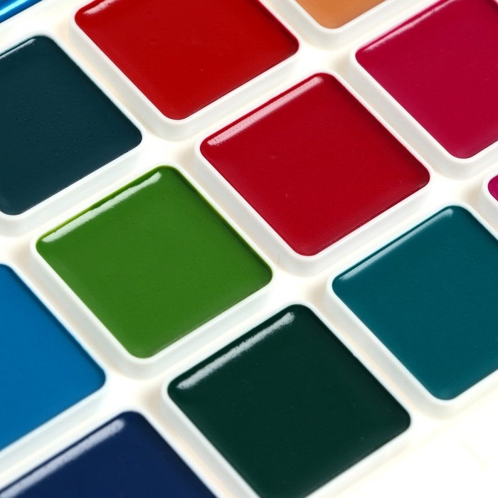 Благодаря качественному прозрачному связующему цвета акварели яркие, чистые и насыщенные. Краски расположены на одной подложке, как на палитре настоящего художника. Кисть ГАММА №2 из гривы пони в наборе.