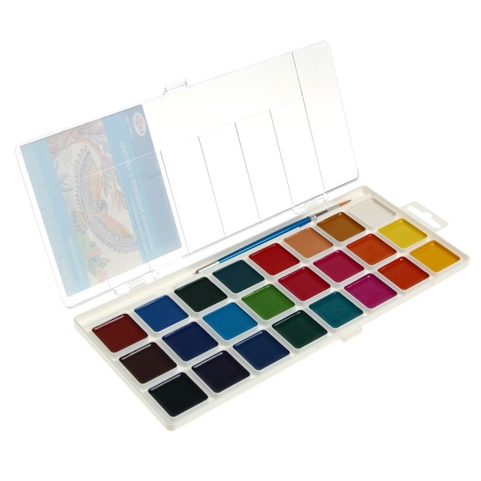 Акварель 24 цвета "Гамма" "Классическая", медовая, с кистью, пластик