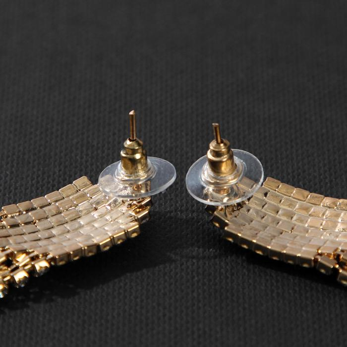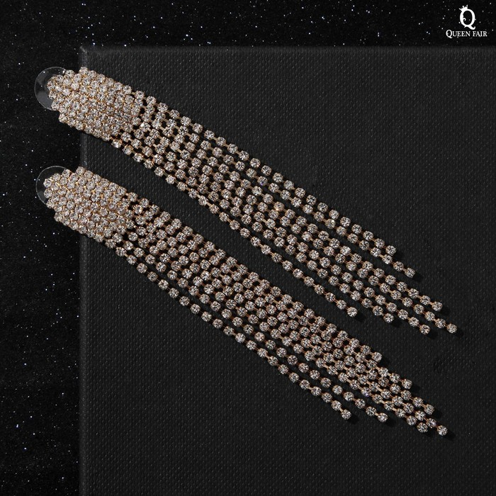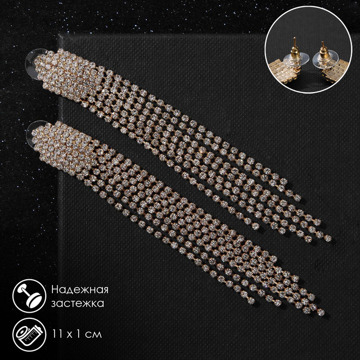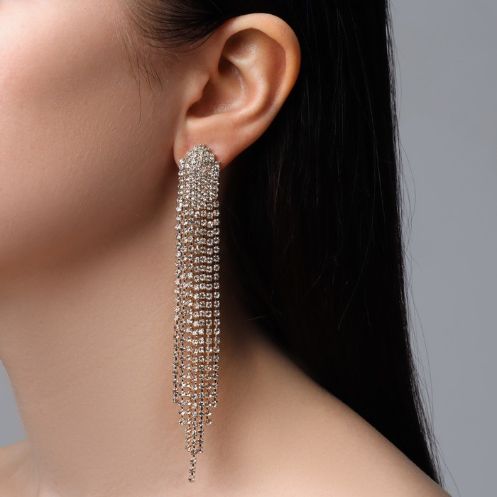 Серьги висячие со стразами «Голливуд» водопад нитей, цвет белый в золоте, 11 см