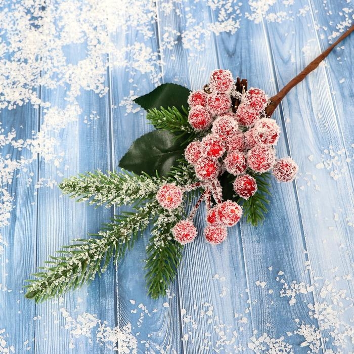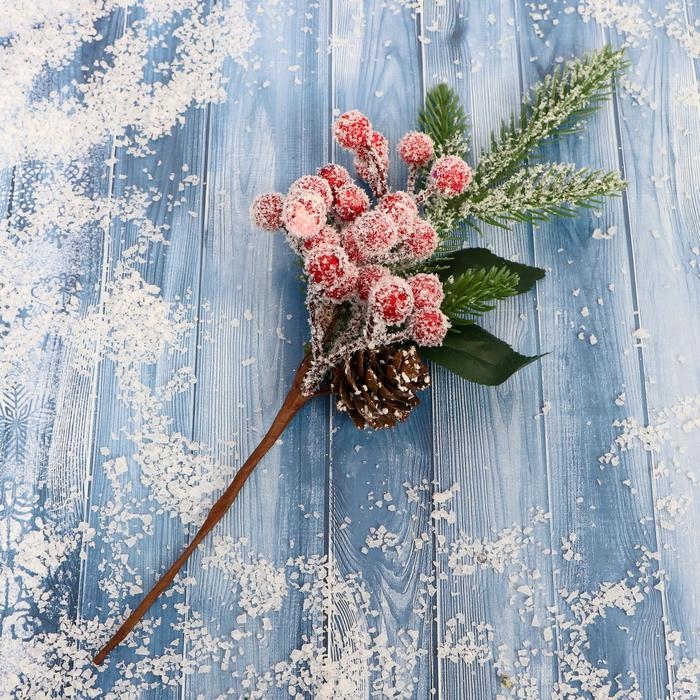 Декор "Зимние грезы" ветка хвои ягоды шишка, 27 см