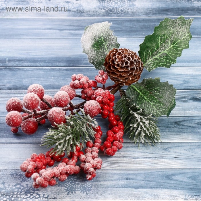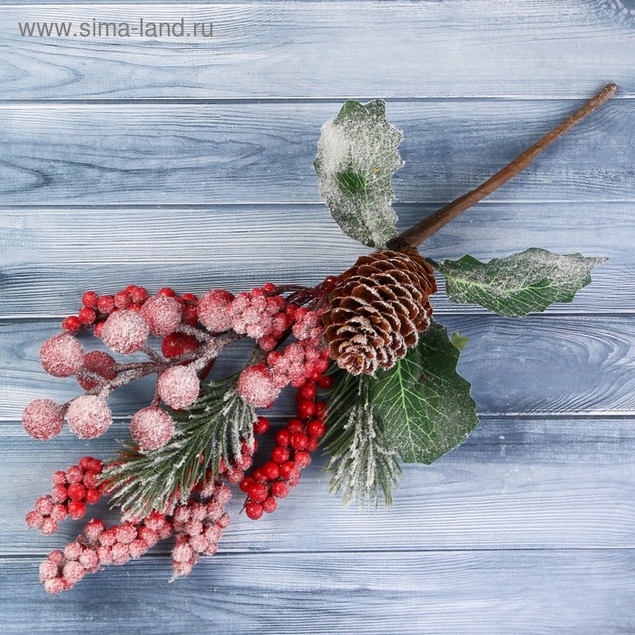 Декор "Зимние грезы" ягоды шишка иней хвоя, 26 см