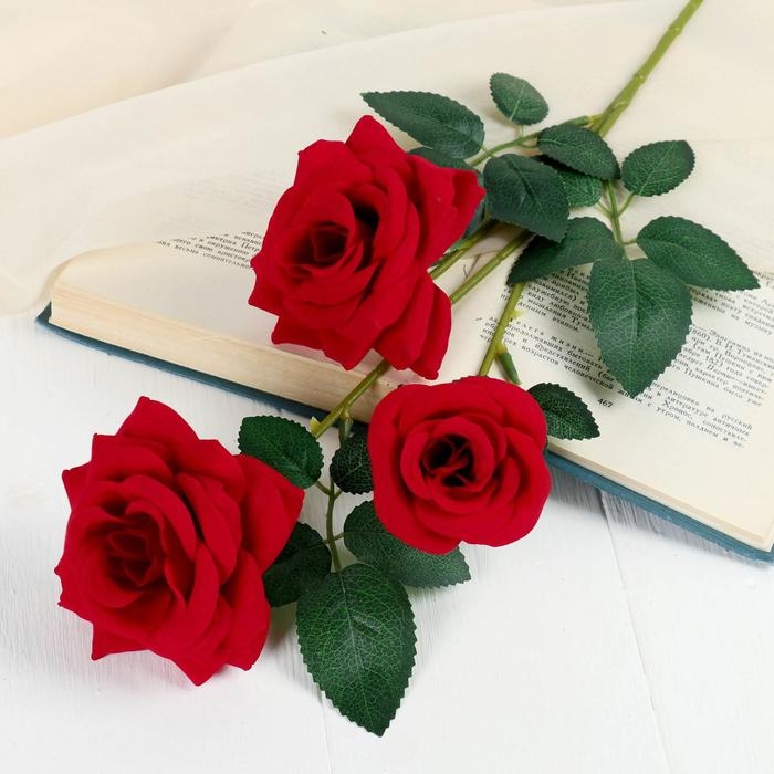 Цветы искусственные "Роза триада" 7х62 см, красный