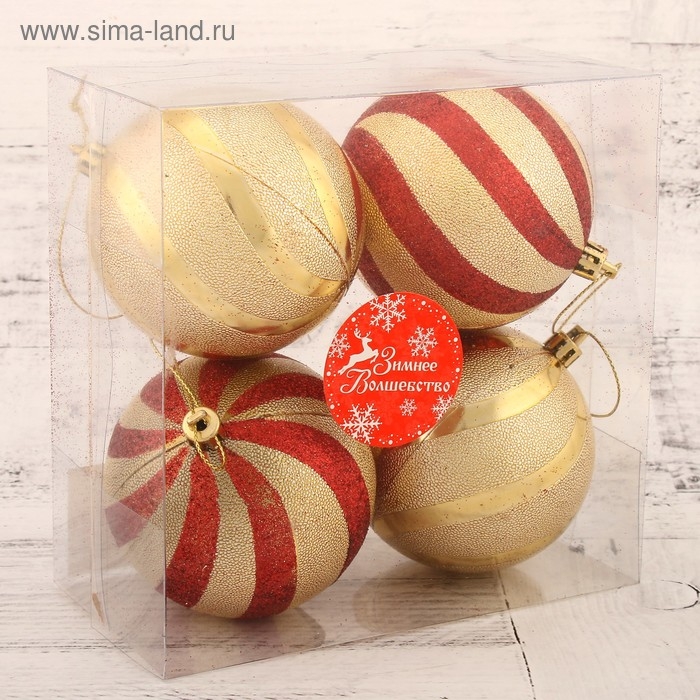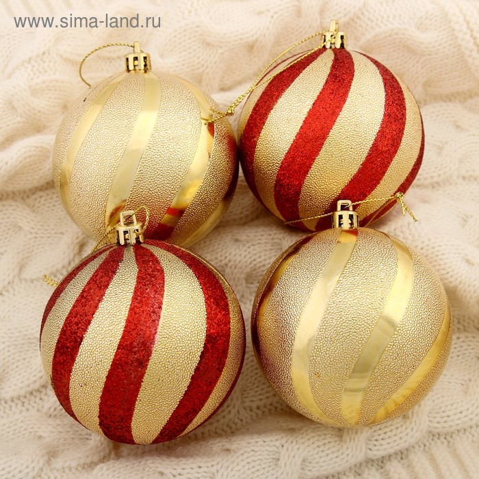 Набор шаров пластик d-8 см, 4 шт «Закрученные полосы» золотисто-красный
