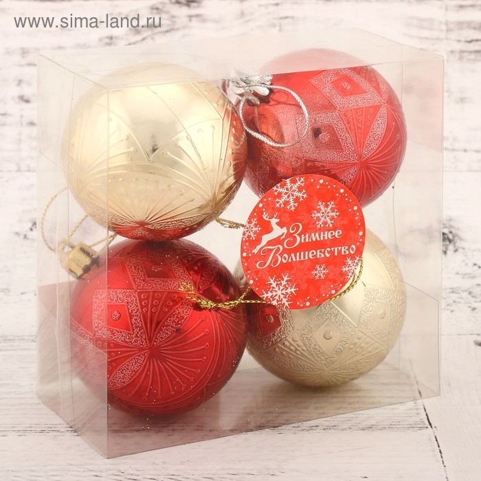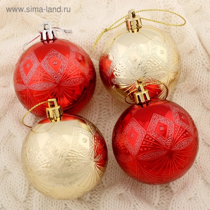 Набор шаров пластик d-6 см, 4 шт "Ария" красно-золотой